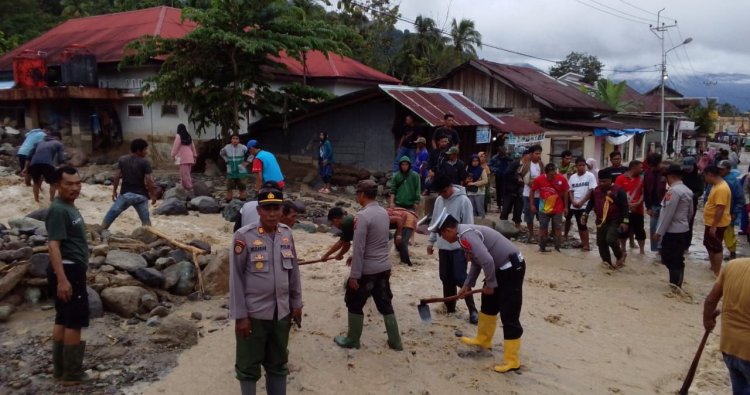 "Saat ini kita sedang beruaha untuk membersihkan material longsor dengan cara manual, sembari menunggu kedatangan alat berat untuk pembersihan tuntas. dan untuk saat ini, dapat kita laporkan bahwa belum ada kita temukan korban jiwa atas kejadian tersebut. "ulas Kapolsek