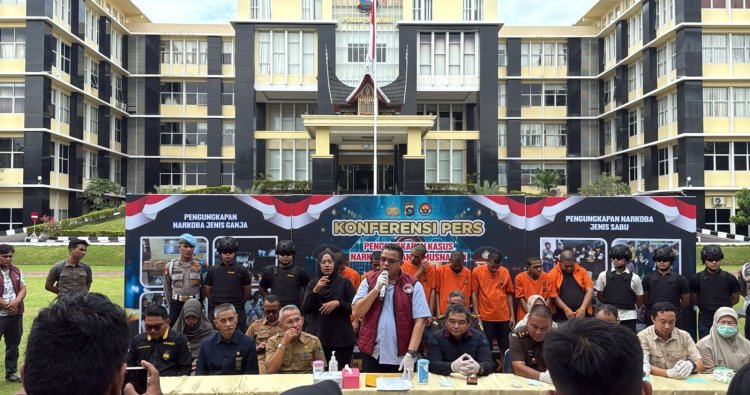 Padang, Sumatera Barat — Polda Sumatera Barat Gelar kegiatan Konfrensi Pers terkait pengungkapan kasus Narkoba disepanjang bulan September 2025, di Halaman depan Mapolda Sumbar pada Selasa (7/10/2025).